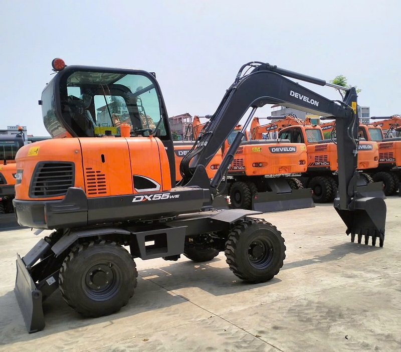 Máy xúc bánh lốp DEVELON DX55W được trang bị động cơ mạnh mẽ và hệ thống thủy lực hiện đại.